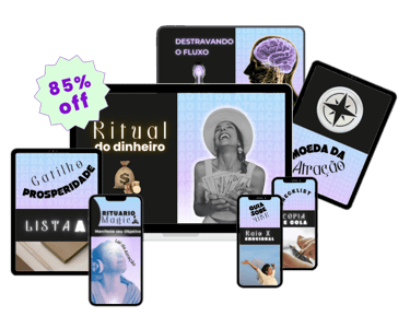 Aqui está o coração do Ritual. Você terá em mãos o Rituario Magic de 9 minutos, com tons especiais, que reprograma sua mente e ensina seu corpo a sair do modo sufoco, atraindo prosperidade.